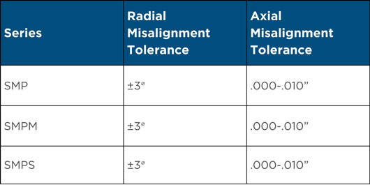 Chart of misalignment tolerances by series